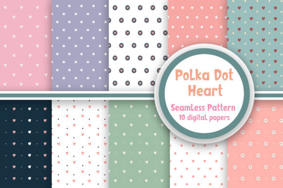 Polka Dot Heart Seamless Pattern Digital Papers.
